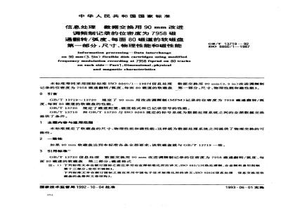 GB/T13719~13720 规定了 90mm用改进调频制(MFM)记录的位密度为7958磁通翻转/弧度、每面 80 磁道的软磁盘的性能。GB/T13720规定了磁道配置、磁道格式和已记录信号的性能。GB/T13719和GB/T13720与ISO9293规定的标号系统为数据处理系统之间的全部数据交换提供了条件。