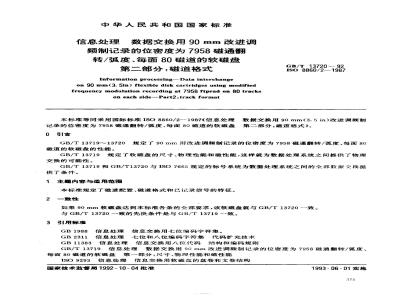 Information processing—Data interchangeon 90 mm(3. 5in) flexible disk cartridges using modifiedfrequency modulation recording at 7958 ftprad on 80 trackson each side--Part2:track formatGB/T 13720 - 92