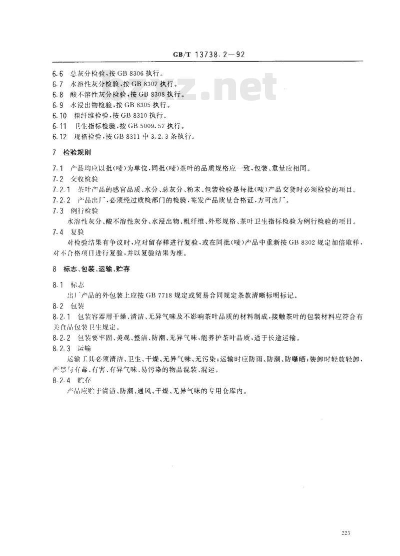 6.6总灰分检验,按GB8306执行。GB/T 13738.2—92