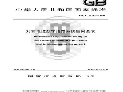 对称电缆数字线路系统进网要求Performancerequirementsfordigitalline systems on symmetric pair cablesusedintelecommunication network1993-02-04发布