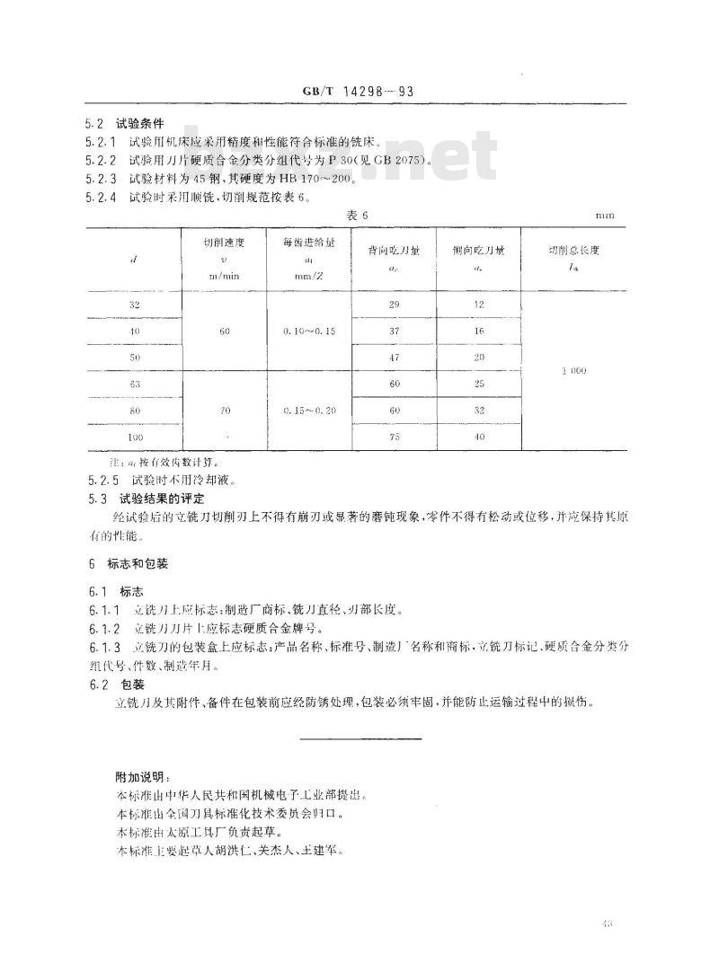 5.2.1试验用机床应采用精度和性能符合标准的铣床,5.2.2试验用力片硬质合金分类分组代号为P30(见GB2075)。5.2.3试验材料为45钢,其硬度为HB170~200。5.2.4