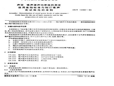 Acoustics-Determination of sound power levels af noise sourcesGuide lines for the use of basic slandards and for thepreparation of noise test codesG/T 14367—93