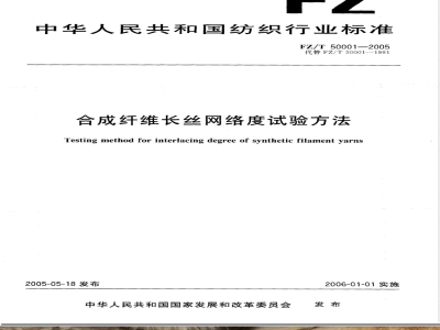 -增加了散件实验室样品的抽取和试验数量的确定(见4.1、4.4);一增加了批量样品需计算变异系数时试样量的确定以及当变异系数达不到规定要求时如何增加卷装数。根据这一内容增加了附录C(见4.4、附录C);增加了解脱力的图示说明(见图1);增加了附录A快速调湿方法(见附录A);增加了高弹丝的预加张力和附录B预加张力的求取方法(见附录B);增加了附录D手工(水浴)移针法(见附录D)。本标准的附录C、D为规范性附录,附录A、B为资料性附录。本标准由中国化纤工业协会提出。本标准由上海化纤(集团)有限公司归口。本标准起草单位:中国石化上海石油化工股份有限公司、中国化纤工业协会化纤产品检测中心。本标准主要起草人:尤琦、陈敏、龚蔚、陆秀琴、虞辛目。本标准所代替标准的历次版本发布情况为:-FZ/T50001—1991。