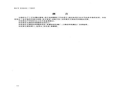 FZ/T90071--95纺织机械噪声声压级的测量方法FZ/T90074--95纺织机械产品涂装FZ/T99014—95纺织机械电气设备技术条件FZ/T90089.1-1996纺织机械铭牌型式、尺寸及技术要求FZ/T90089.2—1996纺织机械铭牌内容ZBW90001-88