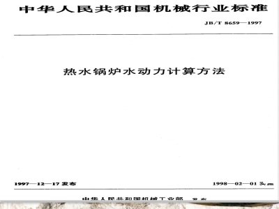 JB/T 8659-1997 热水锅炉动力计算标准为考核水动力特性标准之一,是避免锅炉水动力故障,防止结垢、堵管及爆管事故,确保热水锅炉安全运行的设计手段。 本标准规定了热水锅炉受热管内水动力特性、流动阻力和水动力可靠性的计算和校核方法。 本标准适用于 GB 3166-1998《热水锅炉参数系列》范围内的以水为介质的各种固定式热水锅炉。对于锅壳式卧式外燃水火管热水锅炉的水冷壁受热面以及汽水两用锅炉中的热水系统,亦可参照采用本标准进行水动力特性的验算。 本标准不适用于其水质条件不符合 GB 1576-85《低压锅炉水质》规定要求的热水锅炉。 JB/T 8659-1997 热水锅炉水动力计算方法 JB/T8659-1997 标准下载解压密码:www.bzxz.net