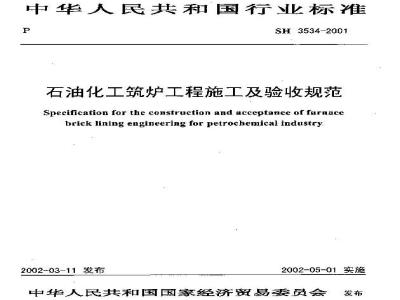 石油化工筑炉工程施工及验收规范Specification fur the construction and acceptance of fumacebrick lining engineering for petrochemical industrySH 3534-2001