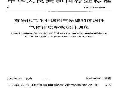 Specifications for design of fuel gas system and combustible gasemissiou systeminpetrochemicalenterprises2002-03-11发布