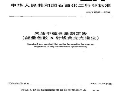 SH/T 0742-2004 汽油中硫含量测定法(能量色散X射线荧光光谱法) SH/T0742-2004 标准下载解压密码:www.bzxz.net