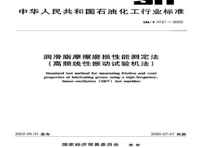 SH/T 0721-2002 润滑脂摩擦磨损性能测定法(高频线性振动试验机法) SH/T0721-2002 标准下载解压密码:www.bzxz.net