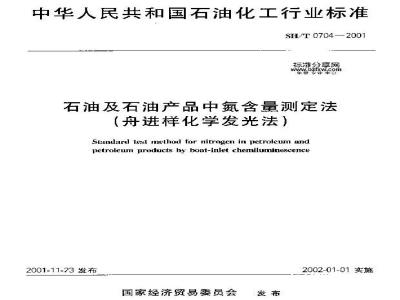 SH/T 0704-2001 石油及石油产品中氮含量测定法(舟进样化学发光法) SH/T0704-2001 标准下载解压密码:www.bzxz.net