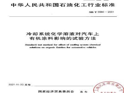 SH/T 0084-2001 冷却系统化学溶液对汽车上有机涂料影响的试验方法 SH/T0084-2001 标准下载解压密码:www.bzxz.net