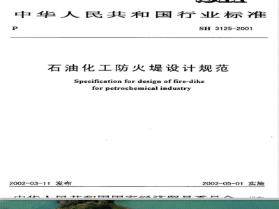 本规范适用于石油化工行业罐区的新建和改建、扩建工程的防火堤设计。 SH 3125-2001 石油化工防火堤设计规范 SH3125-2001 标准下载解压密码:www.bzxz.net