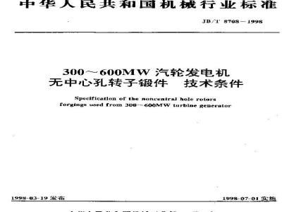 Specificatlon of the noncentral hole rotorsforgings used fron 3v--6ooMW turbine generator1998-13-19发布