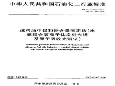 SH/T 0706-2001 燃料油中铝和硅含量测定法(电感耦合等离子体发射光谱及原子吸收光谱法) SH/T0706-2001 标准下载解压密码:www.bzxz.net