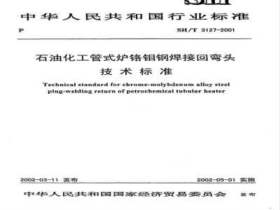 本标准适用于石油化工管式炉铬钼钢焊接回弯头的制造和检验。如有特殊要求,应在设计文件中注明。执行本标准时,尚应符合国家现行有关强制性标准规范的规定。 SH/T 3127-2001 石油化工管式炉铬钼钢焊接回弯头技术规范 SH/T3127-2001 标准下载解压密码:www.bzxz.net