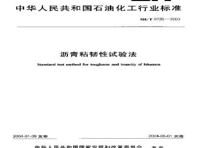 本标准规定的试验法用于测定沥青的粘韧性和韧性。本标准主要适用于橡胶类改性沥青,也适用于其他类聚合物改性沥青和非改性沥青。 SH/T 0735-2003 沥青粘韧性试验法 SH/T0735-2003 标准下载解压密码:www.bzxz.net