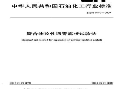 本标准修改采用ASTMD5976-00《道路建筑用I类案合物改非游有标唯规范3中1类案合物性新青试整方法部分,将ASTMD5841-必《进路续筑用血类聚合物改性沥青标准规范>中关T定性现练折现象的部分作为木标痛的料性附录。托两标准的成用范压根据我国实际作了较为具体的定。木标准采用以单位制。源标确中的英制单位均予以校核后更正。本标准北中闻石准化工荣团公划提出,本标准由石础大学(华东)重质研究所技术归日。木标推枣耳单位:石油大学(华东)再质油研究所本标准要起草人:刘国样、张小英。本标准为肖次发布,口2004年6月1口实施。1范围