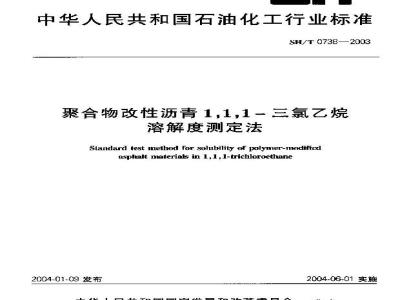 Slardard test methrod for soluhility of polymer-rmndificdasphalt materiaks in 1,1,1-trichloroethane2004-01-09发布