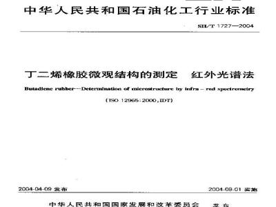 红外光潜法测定微观结构英文服),本标准出全国撑胶与像胶制品标带化技术委员会合成像胶分议术要员参归口。本标准起草单安:中国石油大然气股份有限分司兰州石化公叫白洲化工仙究院、中国石剂化工股份有限公司西右油化工有限公司合成裁改厂丰标准十恶起草人:翼月助,或详样、募洪这。丁二烯橡胺微观结构的测定红外光谱法SH/T 1727—2004