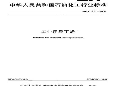 SH/T 1726-2004 工业用异丁烯 SH/T1726-2004 标准下载解压密码:www.bzxz.net