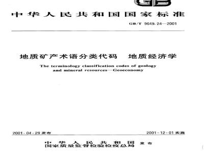 The terminology classification codes of geologyand mineral resources-GeoeconomyGB/T9649.24—2001