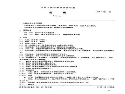 本标准规定了香蕉收购的等级规格、质量指标、检验规则、方法及包装要求。本标准适用于香蕉果品的条蕉、梳蕉的收购质量规格。 GB 9827-1988 香蕉 GB9827-1988 标准下载解压密码:www.bzxz.net
