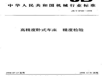 本标准规定了高精度卧式车床的几何精度和工作精度的要求及检验方法。本标准适用于床身上最大回转直径为250~500 mm、最大工件长度至1500 mm的高精度卧式车床。 JB/T 8768-1998 高精度卧式车床 精度检验 JB/T8768-1998 标准下载解压密码:www.bzxz.net