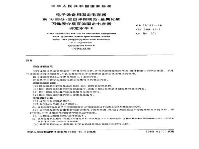 中文名称:电子设备用固定电容器 第16部分:空白详细规范: 金属化聚丙烯膜介质直流固定电容器 评定水平E(可供认证用)