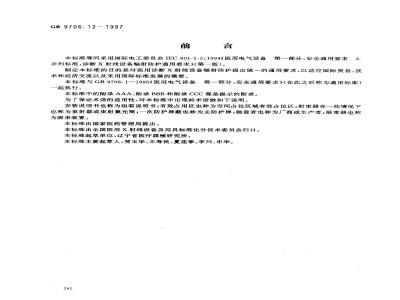 下列专用标准在出版时,其中有关诊断X射线设备辐射防护的要求与本标准的要求并行。GB/T5465.2—1996电气设备用图形符号(idtIEC878—1988)GB9706.3一92医用电气设备诊断X射线发生装置的高压发生器专用安全要求(idtIEC601-2-7:1987)