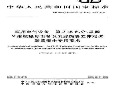 GB 9706.24—2005/IEC 60601-2-45:2001医用电气设备第2-45部分:乳腺X射线摄影设备及乳腺摄影立体定位装置安全专用要求