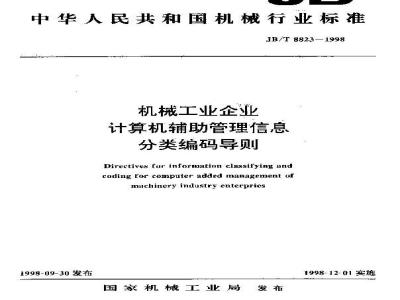 金部分类系统、编码系统和各种代码应按企业标准发布实施。JB/T8823-1998