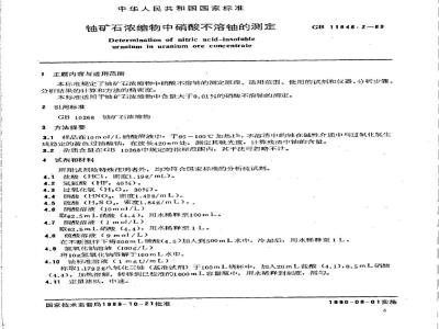 GB/T 11848.2-1989 铀矿石浓缩物中硝酸不溶铀的测定 GB/T11848.2-1989 标准下载解压密码:www.bzxz.net
