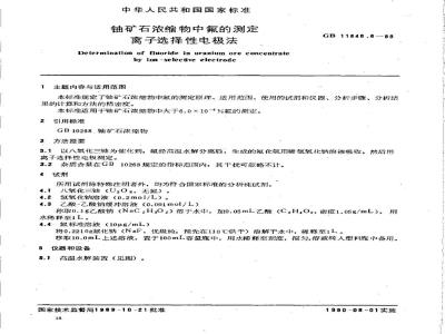 GB/T 11848.6-1989 铀矿石浓缩物中氟的测定 离子选择性电极法 GB/T11848.6-1989 标准下载解压密码:www.bzxz.net