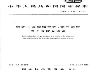 中文名称:铀矿石浓缩物中钾,钠的测定 原子吸收光谱法