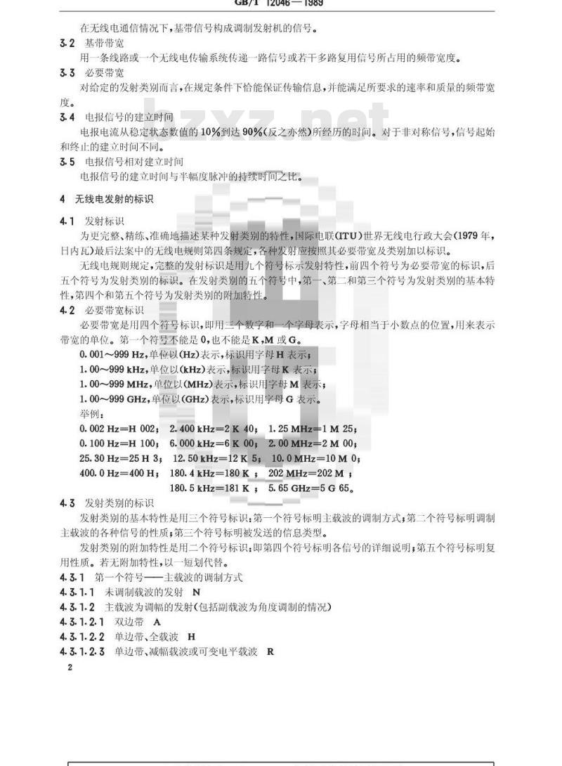 无线电发射的标识及必要带宽的确定Designation of radio emissions anddeterminationofnecessarybandwidthsGB/T12046—1989