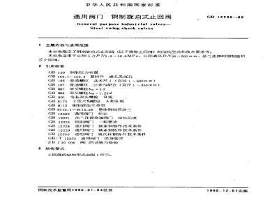 本标准规定了钢制旋启式止回阀(以下简称止回阀)的结构型式和技术要求等。本标准适用于公称!F力PN1.6~16.0MPa、公称通径DN50~500Иm、法逆连接的钢制旋启式止回阅。