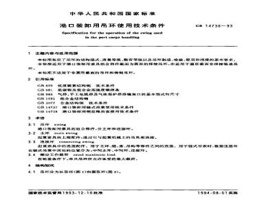 本标准规定了吊环的结构型式、质量等级、载荷等级以及吊环制造、检验、使用和报废的基本要求。本标准适用于港口装卸用索具组合部件截面为圆形的焊接吊环,亦适用于圆形截面非焊接锻造吊环。本标准不适用于非圆形截面的吊环和铸钢吊环。 GB 14736-1993 港口装卸用吊环使用技术条件 GB14736-1993 标准下载解压密码:www.bzxz.net