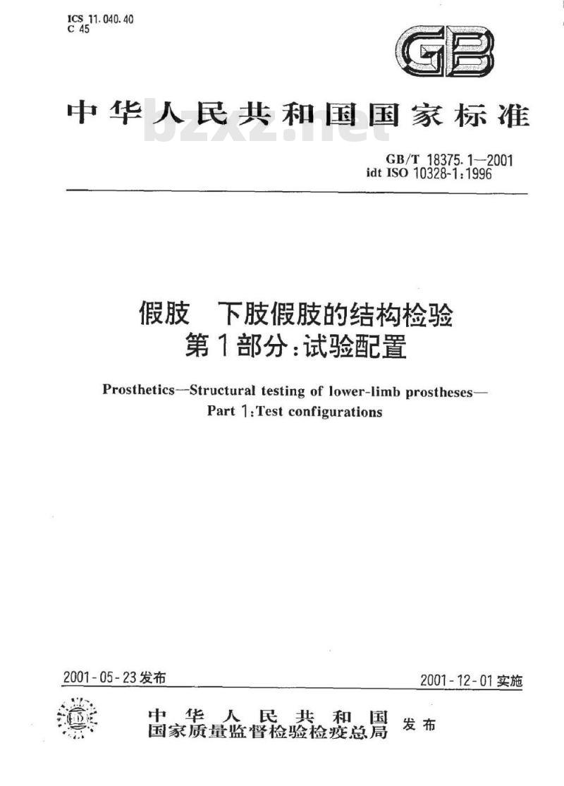 中文名称:假肢 下肢假肢的结构检验 第1部分:试验配置