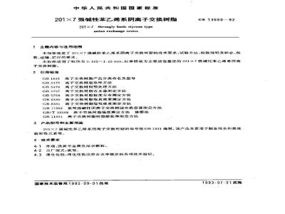 本标准适用于粒径为0.315~1.25mm、以季胺基为主要活性基团的201×7强碱性苯乙烯系阴离子交换树脂。