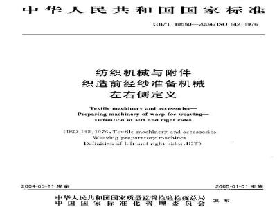 本标准规定了织造前经纱准备机械的左右侧定义。 GB/T 19550-2004 纺织机械与附件 织造前经纱准备机械 左右侧定义 GB/T19550-2004 标准下载解压密码:www.bzxz.net