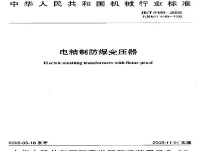 电精制变压器防爆标志就定划下:JB/T 6483—20D5