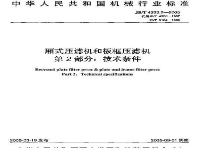 中文名称:厢式压滤机和板框压滤机 第2部分:技术条件