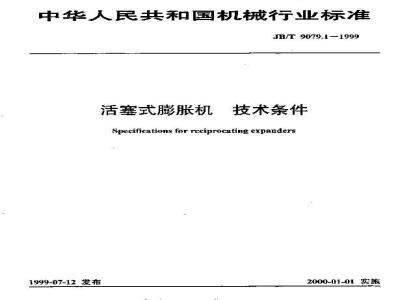 JB/T 9079.1-1999 JB/T 9079.1-1999 活塞式膨胀机 技术条件 JB/T9079.1-1999 标准下载解压密码:www.bzxz.net