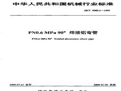 JB/T 9080.2-1999 JB/T 9080.2-1999 PN0.6MPa90°焊接铝弯管 JB/T9080.2-1999 标准下载解压密码:www.bzxz.net
