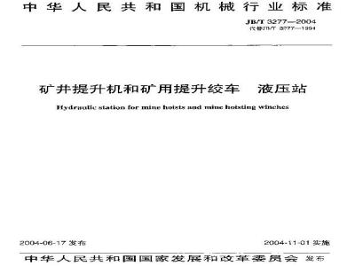 本标准规定了矿井提升机和矿用提升绞车液压站的基本参数、技术要求、试验方法和检验规则、标志、包装、运输和贮存。 JB/T 3277-2004 矿井提升机和矿用提升绞车 液压站 JB/T3277-2004 标准下载解压密码:www.bzxz.net