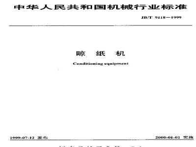 JB/T 9118-1999 JB/T 9118-1999 晾纸机 JB/T9118-1999 标准下载解压密码:www.bzxz.net