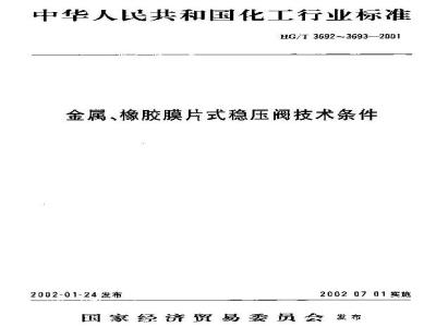 HG/T 3692-2001 金属膜片式稳压阀技术条件 HG/T3692-2001 标准下载解压密码:www.bzxz.net
