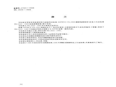 本标准非等效采用美国材料与试验协会标准ASTMD178:1993《橡胶绝缘板材》由化工行业标准HG2949--1989《电绝缘橡胶板》修订而成。本标准与HG2949--1989的主要技术差异为:依据ASTMD178:1993和国内生产厂的实际情况,对胶板的热空气老化性能作了调整,保留了HG2949—1989中实践证明符合国情又与ASTM标准一致的内容。本标准自实施之日起,同时代替HG2949—1989。本标准的附录 A是标准的附录。本标准由中华人民共和国原化学工业部技术监督司提出。本标准由全国橡标委橡胶杂品分技术委员会归口。本标准主要起草单位:北京市橡胶制品设计研究院。本标准参加起草单位:天津双安防护用品有限责任公司。本标准主要起草人:宋宝清、李梅。本标准于1989年首次发布为国家标准,1998年调整为强制性化工行业标准,并重新进行了编号。352
