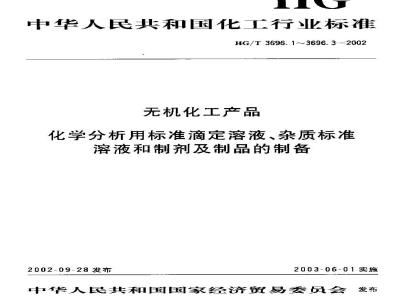 本标准规定了无机化工产品化举分析用标准滴定游液的配制和标定方法。HG/T 3696.1—2002