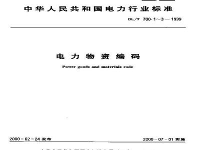 本标准规定了电力物资编码的基本要求,适用于电力行业物资编码的制定。 DL/T 700.1-1999 电力物资编码 第1部分:材料产品 DL/T700.1-1999 标准下载解压密码:www.bzxz.net